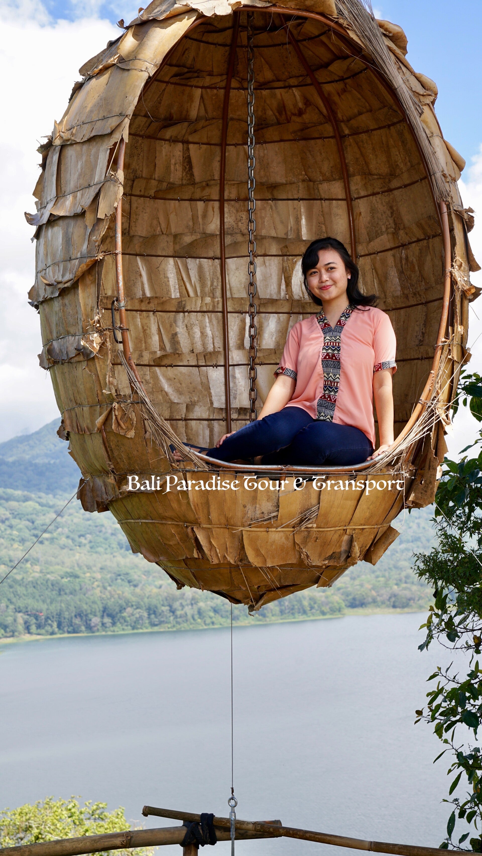 The swing at Wana Giri Village with the view on the lake.